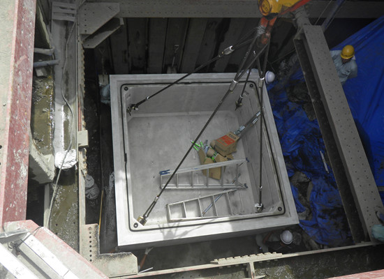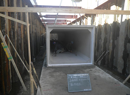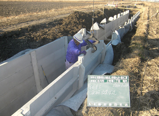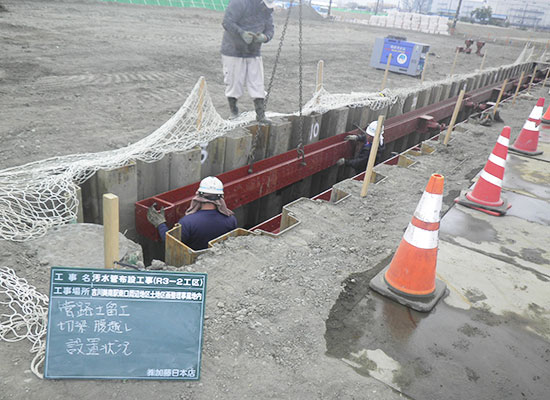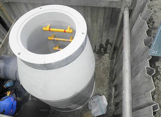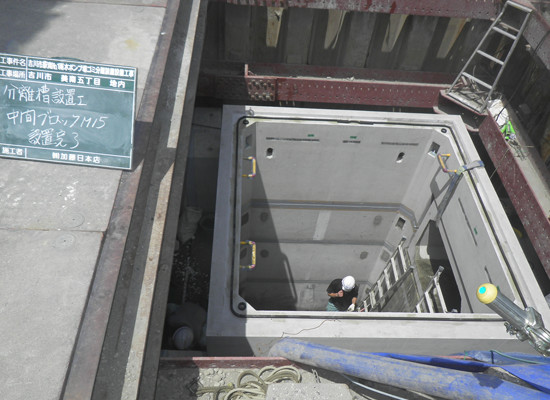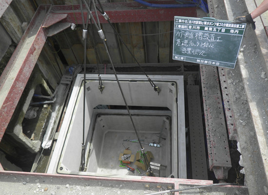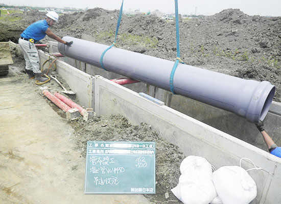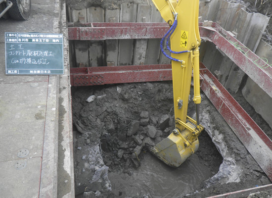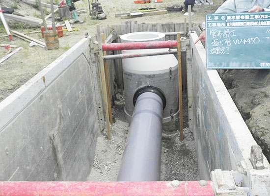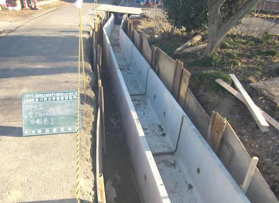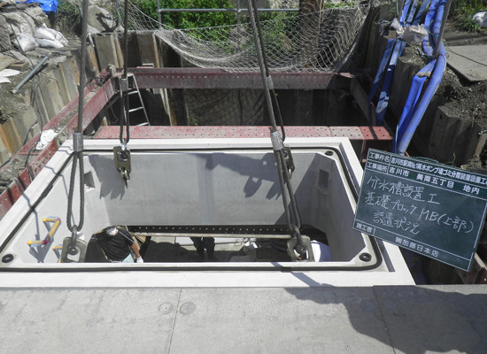 公共工事において、全国に先駆けて既設排水路中にゴミ分離装置の設置工事を行いました。