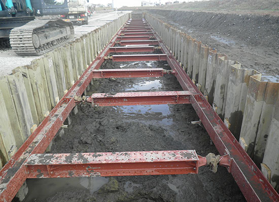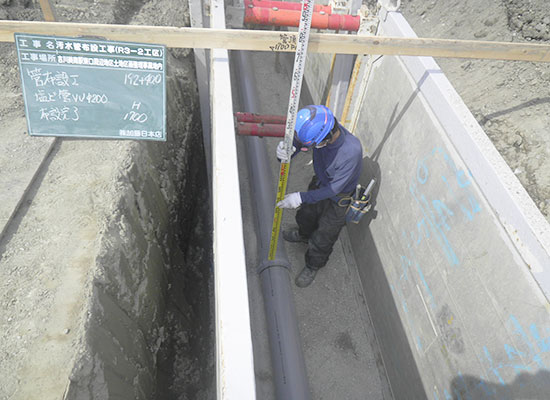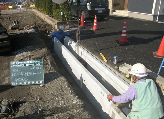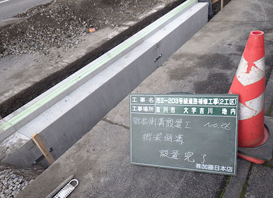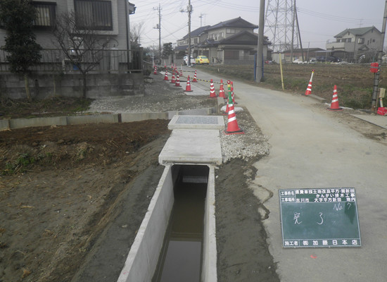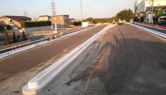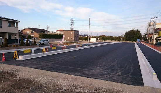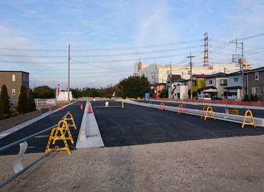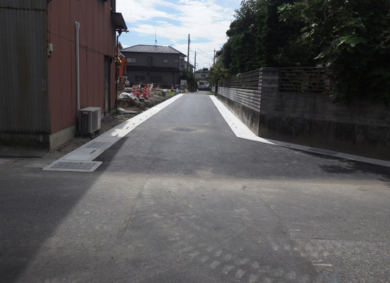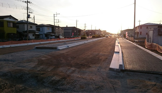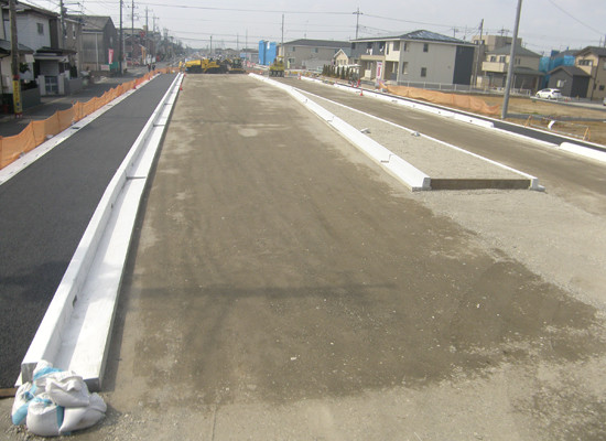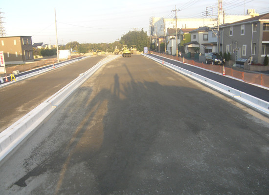 新設道路の上下水道管(ライフライン)から排水側溝設置、道路整備工事まで全て一括して行います。