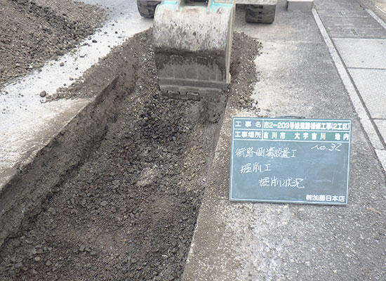 土木工事全般、排水路整備工事や道路出入口整備工事、道路舗装工事などの工事をします。